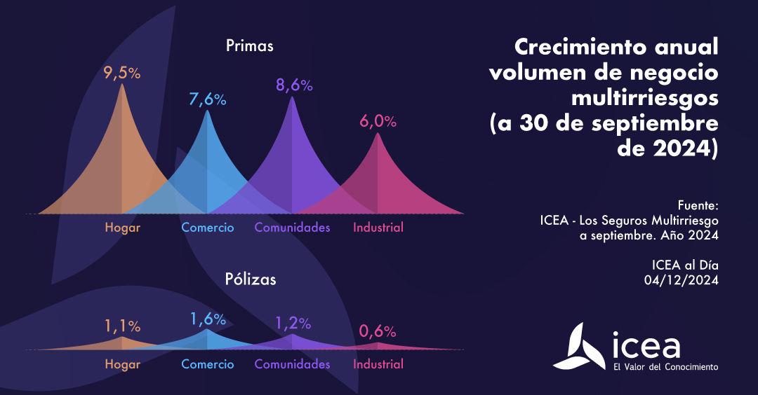 Al cierre del pasado mes de septiembre, los seguros de Hogar, con un 9,5% de crecimiento en primas, marcaron el mayor avance dentro de Multirriesgos, según los datos de ICEA. Por detrás se situó Comunidades (+8,6%).