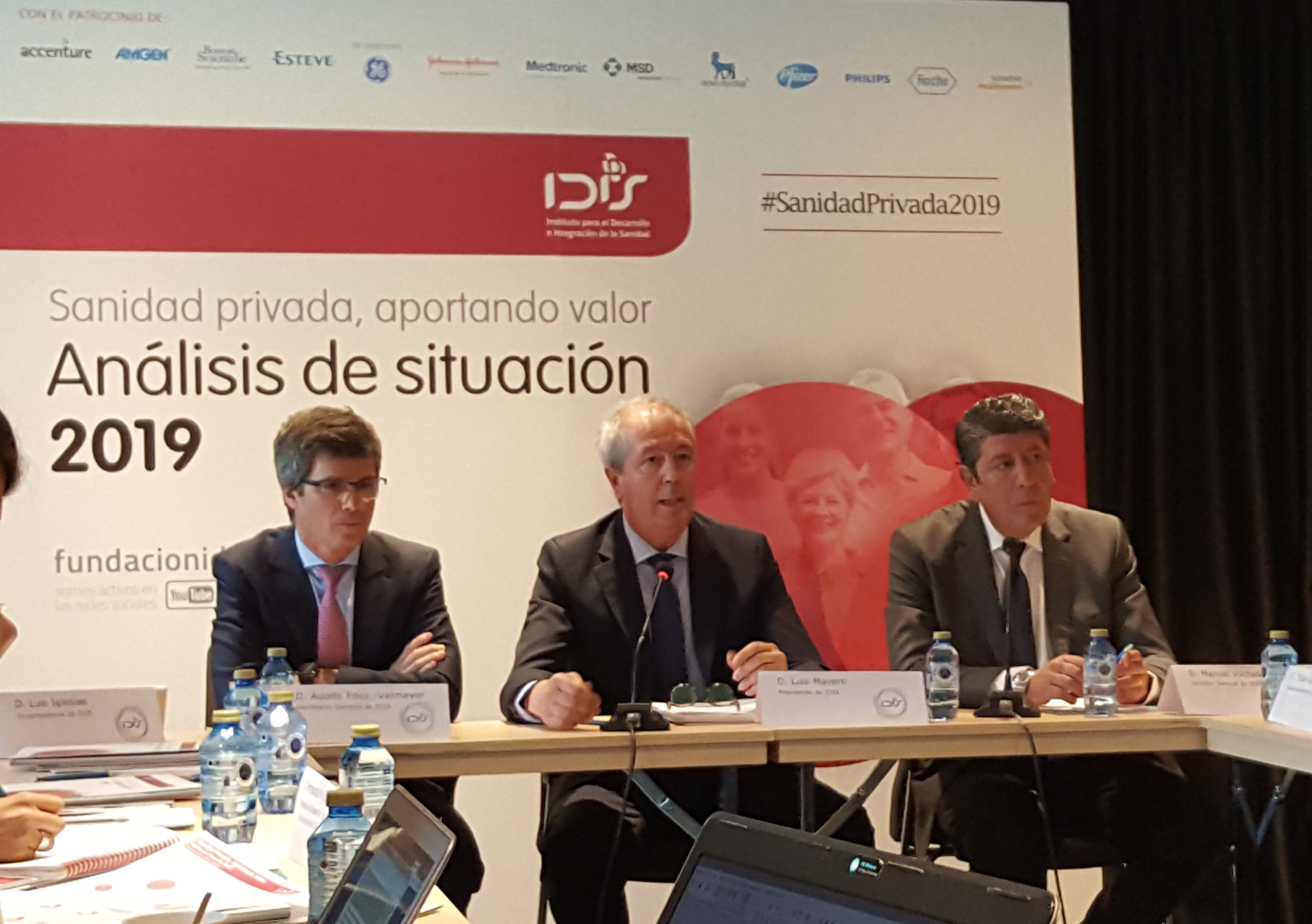 El secretario general de Fundación IDIS, Adolfo Fernández-Valmayor, ha reiterado la oferta de la Fundación al próximo Gobierno que salga de las urnas y a los gobiernos regionales, que al fin y al cabo son los que tienen transferidas las competencias de sanidad, para trabajar juntos para construir y definir la sanidad española del futuro. Así lo ha dicho durante la presentación del 'Informe Sanidad privada, aportando valor: Análisis de situación 2019' que la acaban de presentar. "La sanidad en España es buena y la sanidad privada contribuye a que esto sea así", ha señalado. "En el momento en que nos encontramos volvemos a tender la mano al sector público, creemos que es muy importante que nuestra voz sea escuchada y que nos dejen participar en la construcción y definición de un sistema sanitario futuro. Si no hacemos nada, si no hacemos cambios tendremos dificultades", alertó el secretario general. "En esta fase electoral volvemos a ofrecernos al diálogo y a contribuir todos juntos en mejorar la solvencia financiera, la flexibilidad, la cooperación y las desigualdades que existen en el sistema. Creemos que podemos aportar valor", añadió.