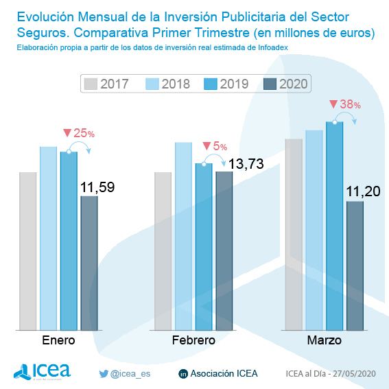 La caída de la inversión publicitaria del sector ha caído casi un 24% en el primer trimestre. Aunque es cierto que el descenso se ha producido en los tres meses, la realidad es que ha sido más acusada en el mes de marzo debido en parte al impacto del Covid-19. Los datos de ICEA sitúan en un total de 36,5 millones de euros la inversión sectorial en publicidad.
