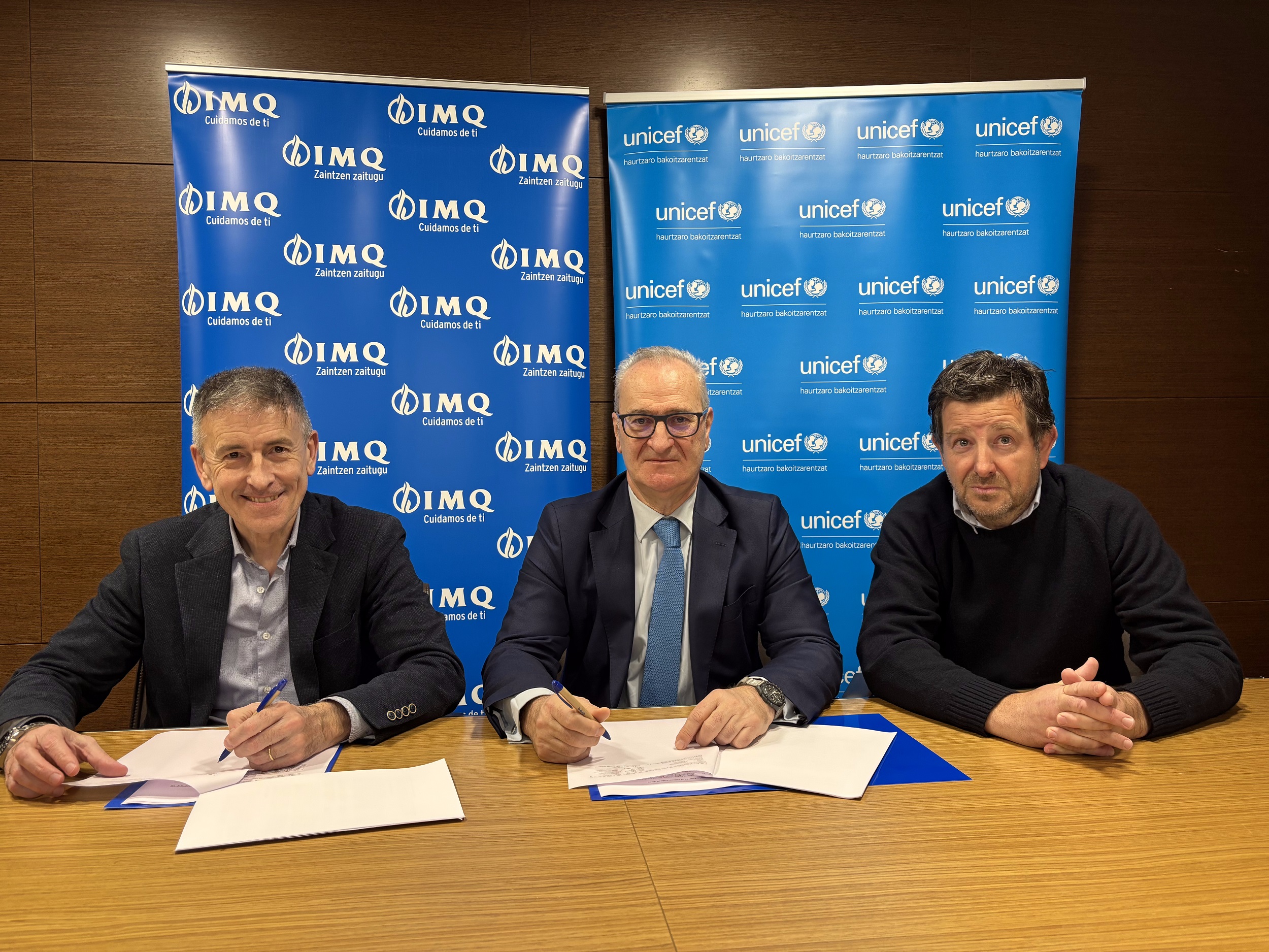 El acuerdo ha sido rubricado por Javier Maiztegui, director general de IMQ Seguros, y Joseba Madariaga, presidente de Unicef Comité Euskadi, en un acto celebrado en Bilbao.