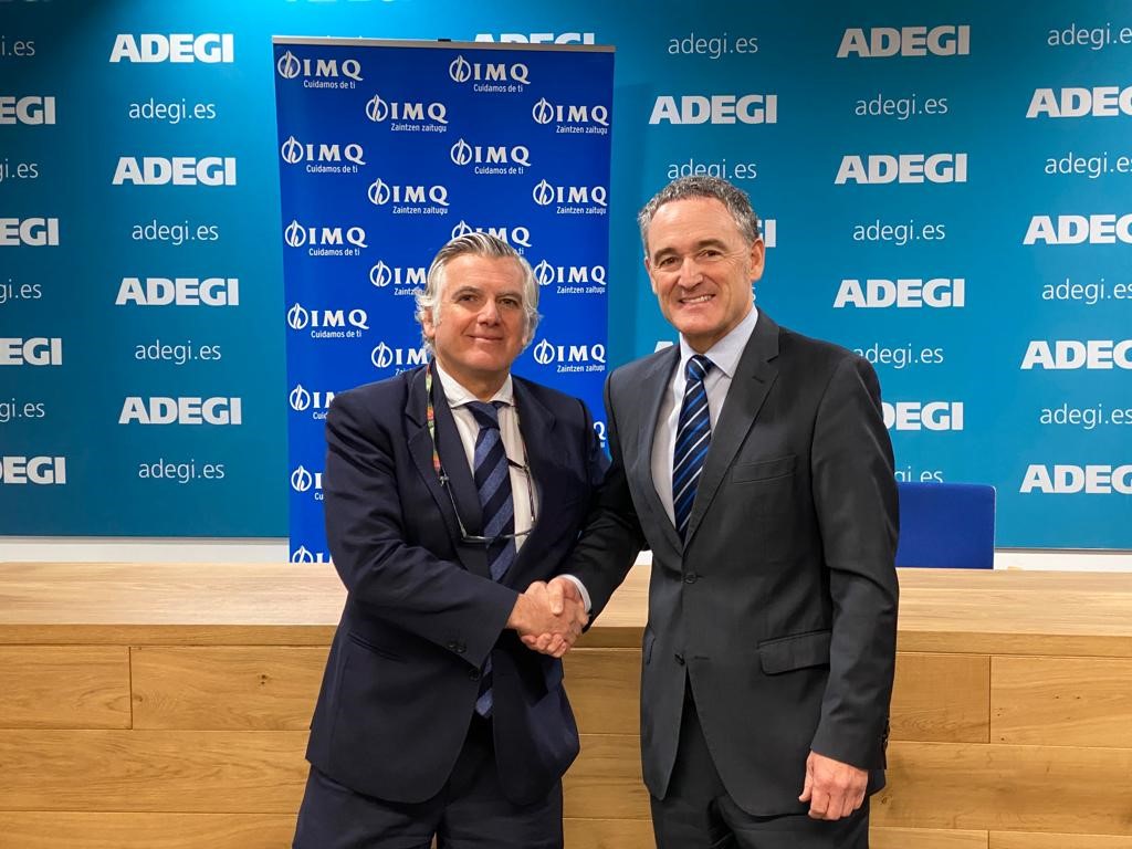 El acuerdo lo han sellado Luis Fernández de Larrea, director de Desarrollo de negocio y Canales de venta de IMQ, y José Miguel Ayerza, director general de Adegi, organización que cuenta con más de 1.000 empresas asociadas.