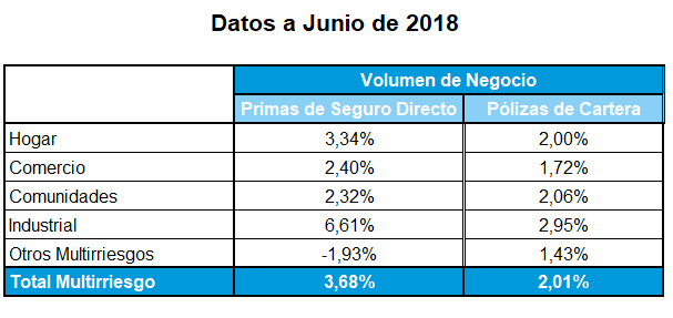 Finalmente, Multirriesgos creció un 3,68% en el primer semestre de 2018 –inicialmente se comunicó un aumento del 3,58%–, según la última información facilitada por ICEA en su página web. Y el ramo se ha beneficiado claramente del impulso de Industria, que incrementó su volumen de primas nada menos que un 6,61% hasta junio. Por su parte, Hogar continúa registrando una trayectoria positiva (3,34%), al igual que Comercio (2,40%) y Comunidades (2,32%). La nota negativa la pone Otros Multirriesgos, que ha caído un 1,93%.