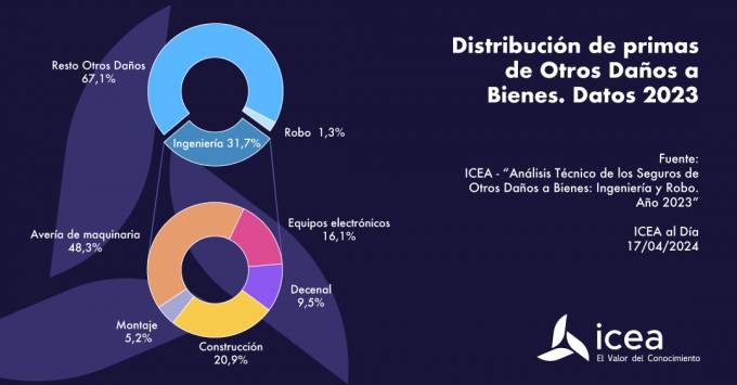 Al cierre de 2023, los seguros de Ingeniería, encuadrados dentro de Otros Daños a Bienes, obtuvieron un volumen de negocio de 520,1 millones de euros, lo que equivale al 31,7% del total de dicho ramo, según los datos de ICEA. Supuso un crecimiento del 26% en comparación con los 412,8 del año anterior. Todas sus modalidades crecieron, especialmente Construcción con un 43,4% de incremento.