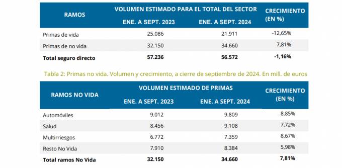 Los datos al cierre del tercer trimestre muestran que, dentro de No Vida, se registraron crecimientos en las principales modalidades. El incremento en Autos fue del 8,85%, finalizando el trimestre con ingresos por primas de 9.809 millones de euros; en Multirriesgo el avance fue del 8,67%, hasta los 7.359 millones; en Salud fue del 7,72%, para concluir con 9.108 millones; y en Resto No Vida las primas se situaron en 8.384 millones, un 5,98% más.