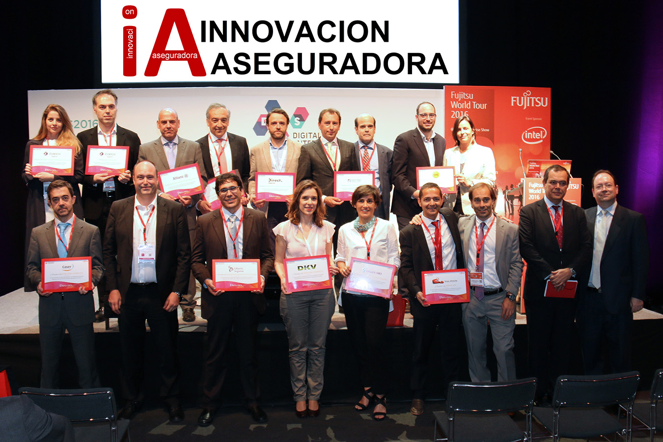Las entidades galardonadas por Innovación Aseguradora por su esfuerzo de posicionamiento y servicio en Internet recogieron sus premios acreditativos en el marco del Fujitsu World Tour, celebrado el 25 de mayo Madrid. El acto fue conducido por Carlos Albo, CEO de Exponent y fundador de Innovación Aseguradora.