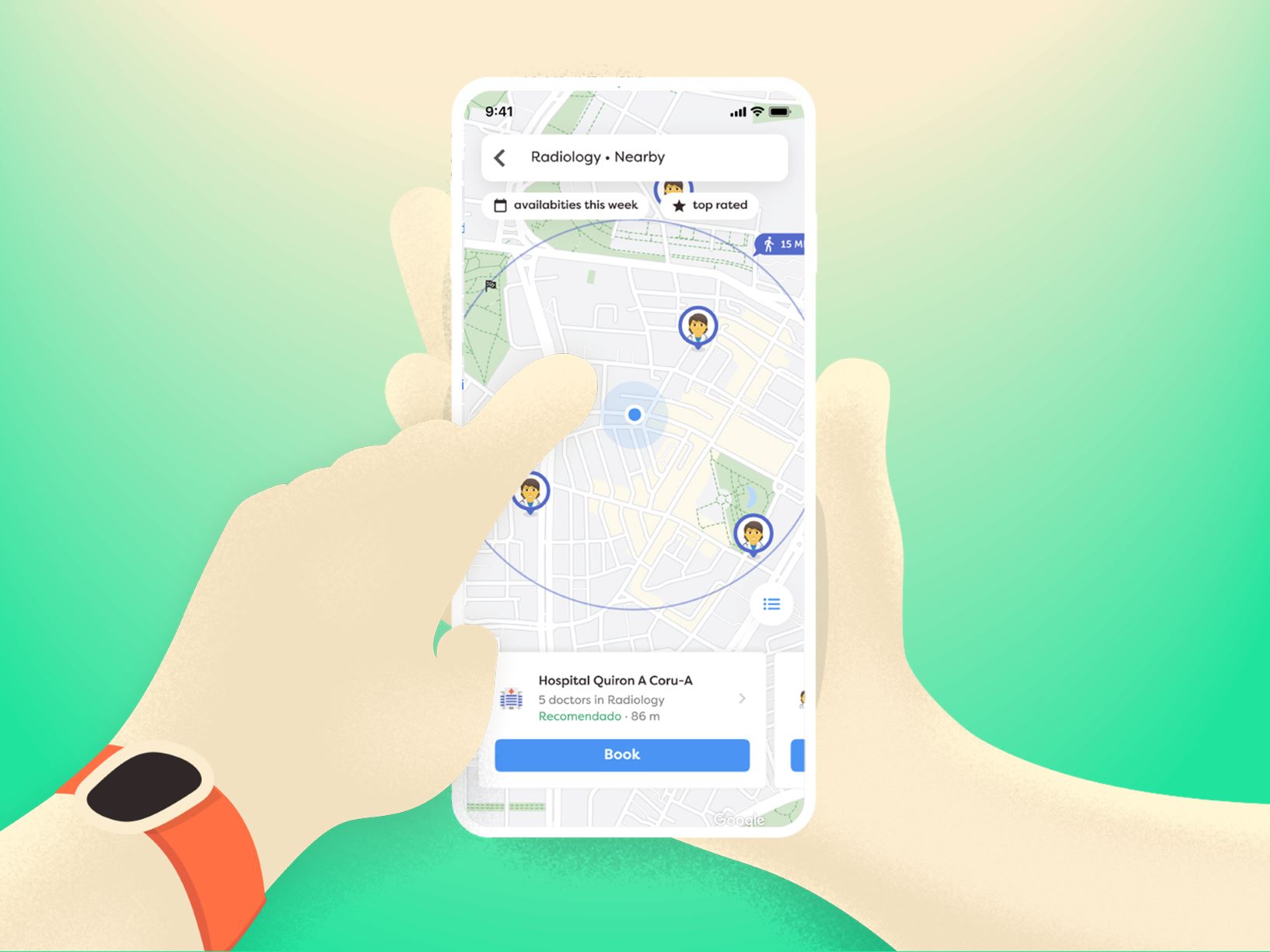 Otra de las opciones de la app es la geolocalización. De esta manera el usuario puede encontrar y pedir cita con el especialista o en el centro médico más cercano en cada momento. La insurtech cuenta con un cuadro médico de 40.000 médicos y más de un millar de clínicas.