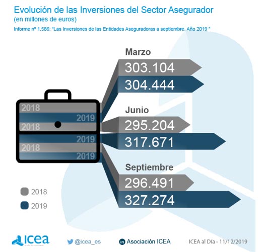 El volumen total de las inversiones del sector asegurador español en el tercer trimestre de este año alcanzó los 327.274 millones de euros, lo que significa un crecimiento del 10,3%, respecto al mismo periodo del año anterior, según los datos que ha dado a conocer ICEA.
