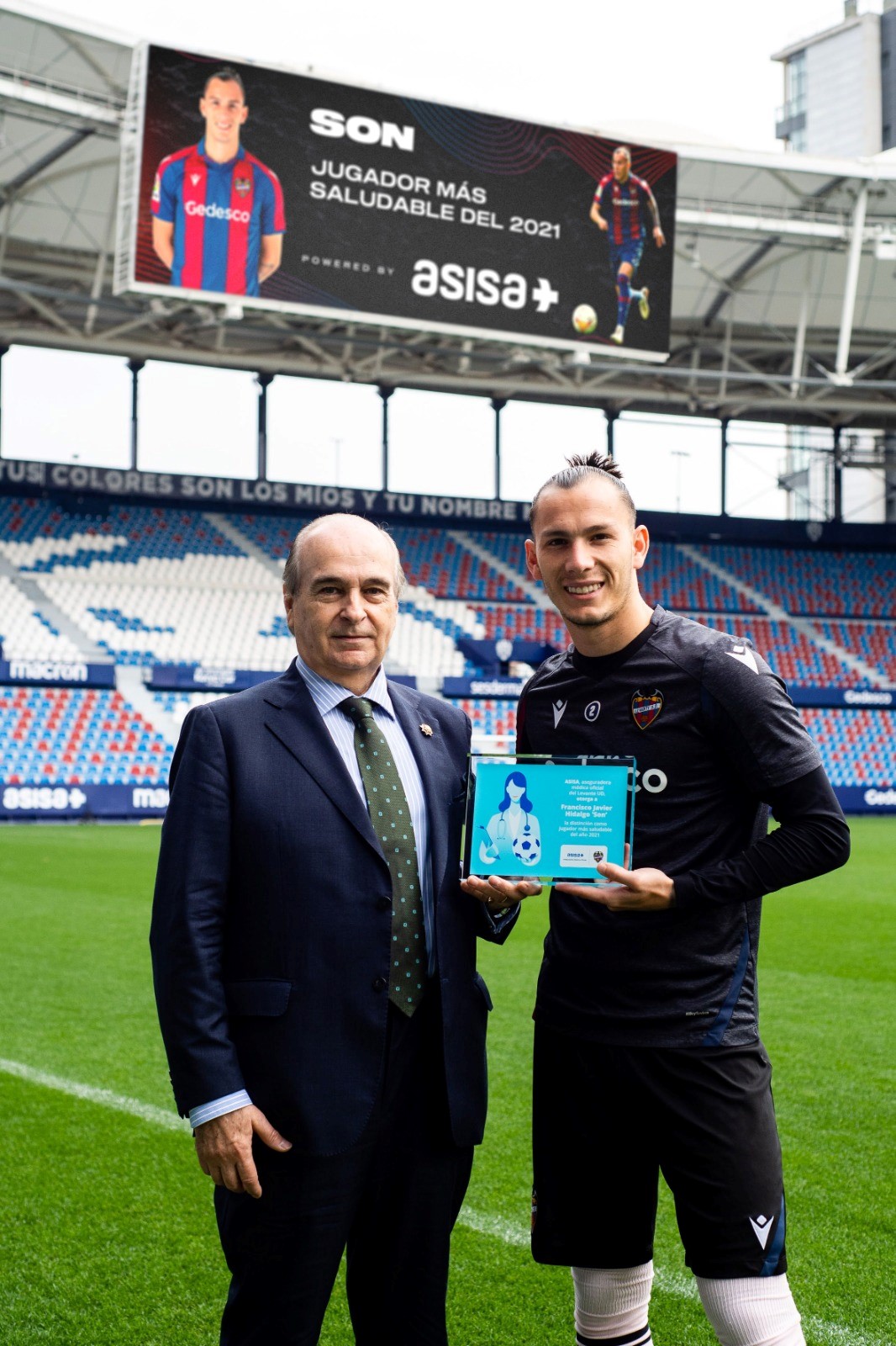 Asisa ha entregado a Francisco Javier Hidalgo, lateral derecho del Levante UD, el trofeo como 'Jugador más Saludable Asisa' del 2021. Javier Gómez-Ferrer, consejero de Asisa-Lavinia y delegado de la compañía en Valencia, ha sido el encargado de entregar el galardón.