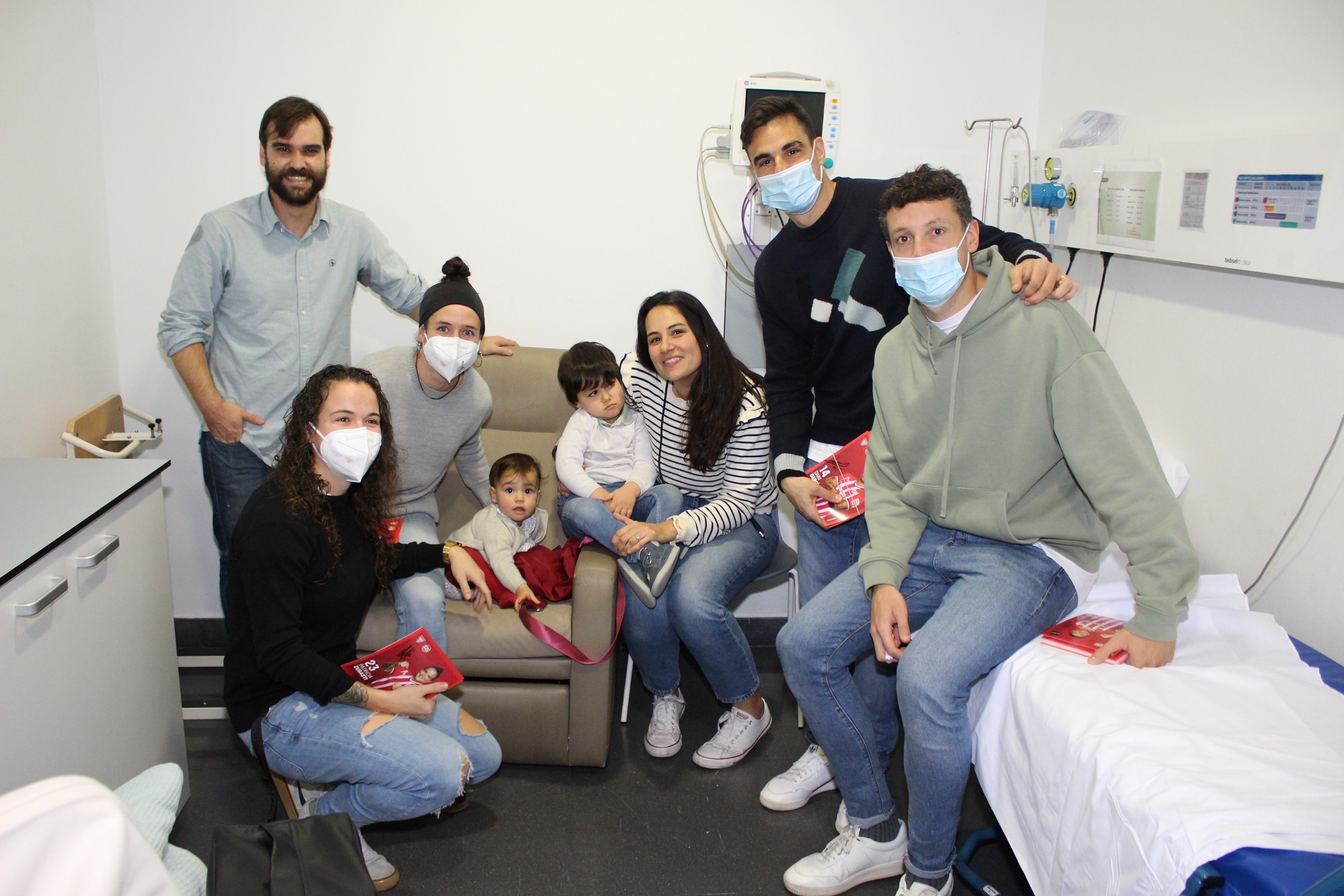 Los jugadores y jugadoras del Athletic Club visitan a los niños ingresados en el IMQ Zorrotzaurre