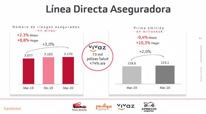 El volumen de primas de la aseguradora alcanzó los 223,1 millones, mejorando las cifras de marzo pasado en un 2%. La parte de primas relacionados con motor se mantuvo estable -ligera caída del 0,4%-, mientras que Hogar avanzó un 10,4%. Por su parte, Vivaz, la marca de Salud de la compañía, registró 73.000 pólizas