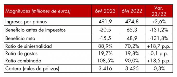Explica la compañía que estos datos son consecuencia "del impacto de una inflación de los costes de prestación todavía en niveles muy elevados, que continúa afectando a los márgenes del sector asegurador, especialmente en el ramo de automóviles".