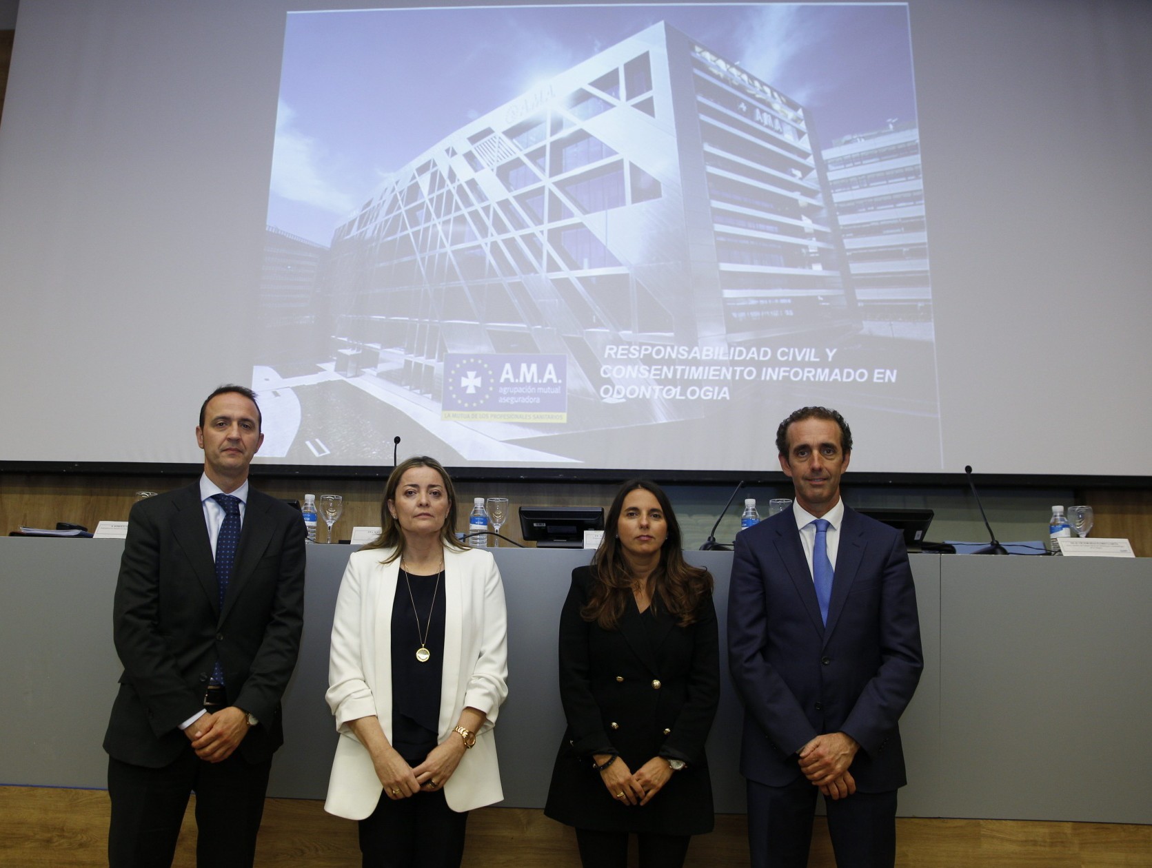 A.M.A. ha analizado la RC Profesional y el consentimiento informado en una jornada celebrada en el Colegio de Odontólogos y Estomatólogos de Madrid. El acto lo presidió Antonio Montero, presidente del colegio, y participaron Raquel Murillo, directora general adjunta de A.M.A., que abordó el escenario actual del ramo; Beatriz Martínez, jefa del Departamento de Siniestros de RC Profesional, que habló sobre reclamaciones; Roberto Núñez, letrado del Departamento de Siniestros de RC Profesional, que centró su intervención en los aspectos jurídicos de la póliza; y Victor Díaz-Flores, jurista asesor del Colegio de Odontólogos y Estomatólogos de Madrid.