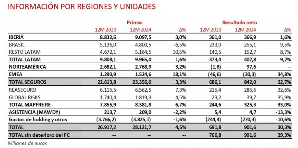 En EMEA, las primas se han elevado hasta los 1.525 millones (+18,1% en euros), mejorando en todos los mercados. La región reduce significativamente las pérdidas hasta 30,3 millones (46,6 millones en 2023) que se deben al complicado entorno de Autos, fundamentalmente en Alemania e Italia. Turquía reporta un resultado de 28,1 millones de euros (+138,2%), fruto de la fuerte mejora del ratio combinado y una significativa contribución del resultado financiero. Malta ha aumentado el beneficio un 5,2%, hasta 6,9 millones.