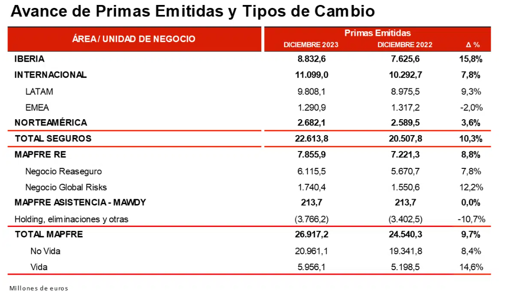 Mapfre avanza récord histórico en primas con la región Iberia creciendo un 16%