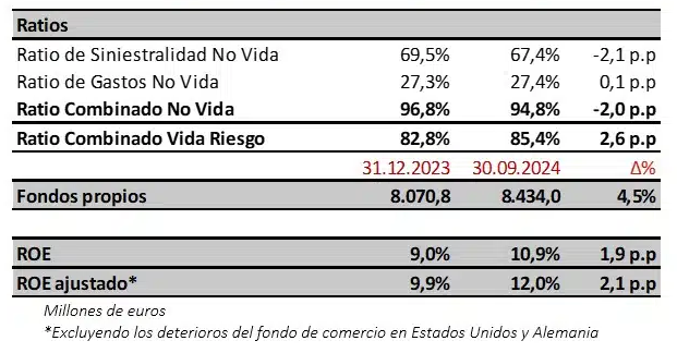 En Iberia el ratio combinado general de encuentra en consonancia con el grupo, sin embargo Autos sigue con números por encima del 100%. En concreta, el ratio de este negocio se sitúa al cierre de septiembre en el 104,7%, lo que muestra una mejora respecto al 106,1% de junio. Cita el grupo que este alto ratio es consecuencia del coste de los daños personales y por ello señala que "las tarifas se continuarán adaptando en base a la evolución de los costes esperados".