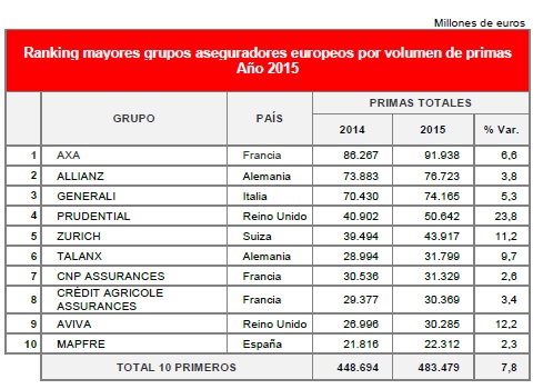 Esta es la duodécima edición de un ranking que por primera vez ha elaborado el Servicio de Estudios de Mapfre, en el que se ha publicado también el ranking de las principales compañías de seguros No Vida de Europa, en el que Mapfre ocupa la sexta posición.