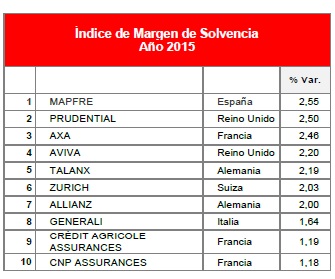 En el ranking de los principales grupos aseguradores europeos, la compañía española Mapfre sigue ocupando uno de los primeros puestos. Destaca el hecho de que prácticamente todos los grupos que forman parte de este estudio han incrementado o mantenido su ratio de solvencia en 2015 y todos ellos muestran niveles adecuados de capitalización y fortaleza financiera. En cuanto Mapfre su índice de margen de solvencia es el más elevado entre los principales grupos europeos.