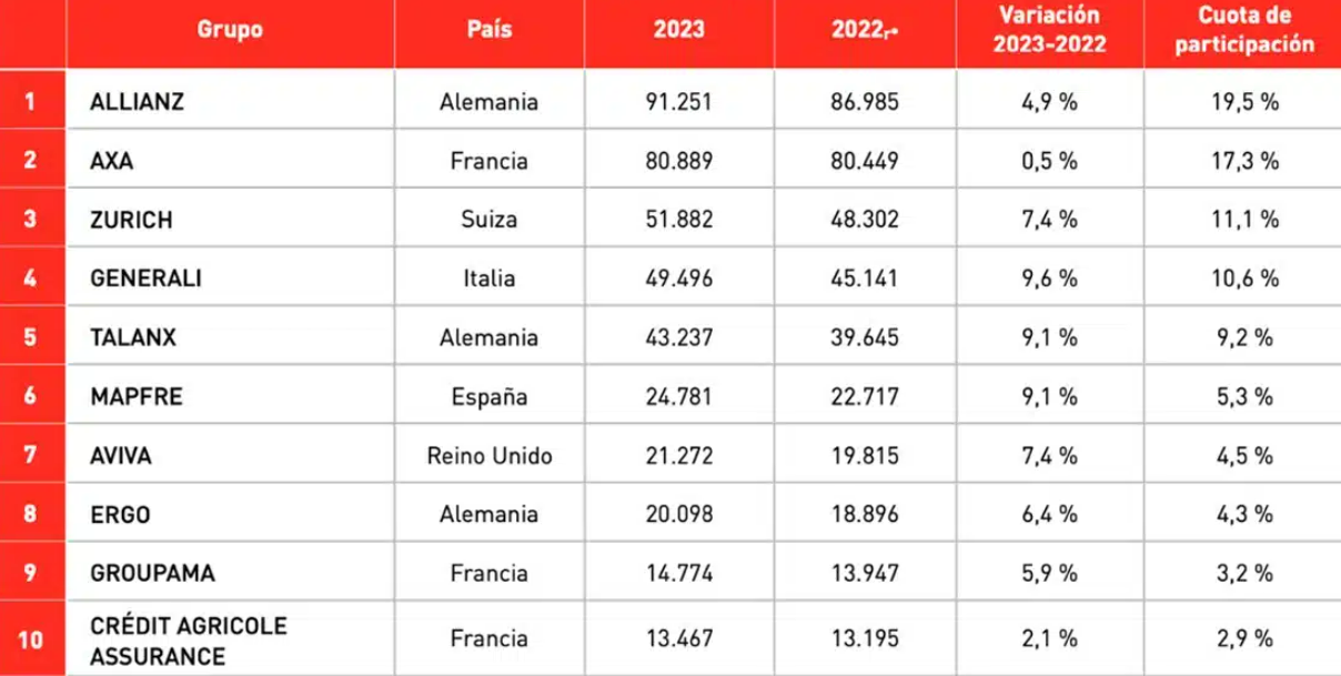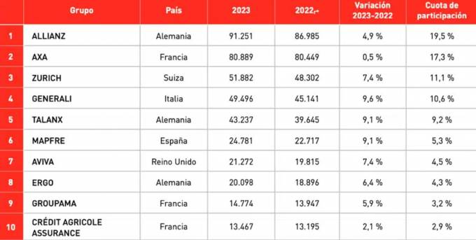Mapfre subió al 6º puesto del ranking de aseguradoras europeas de No Vida en 2023