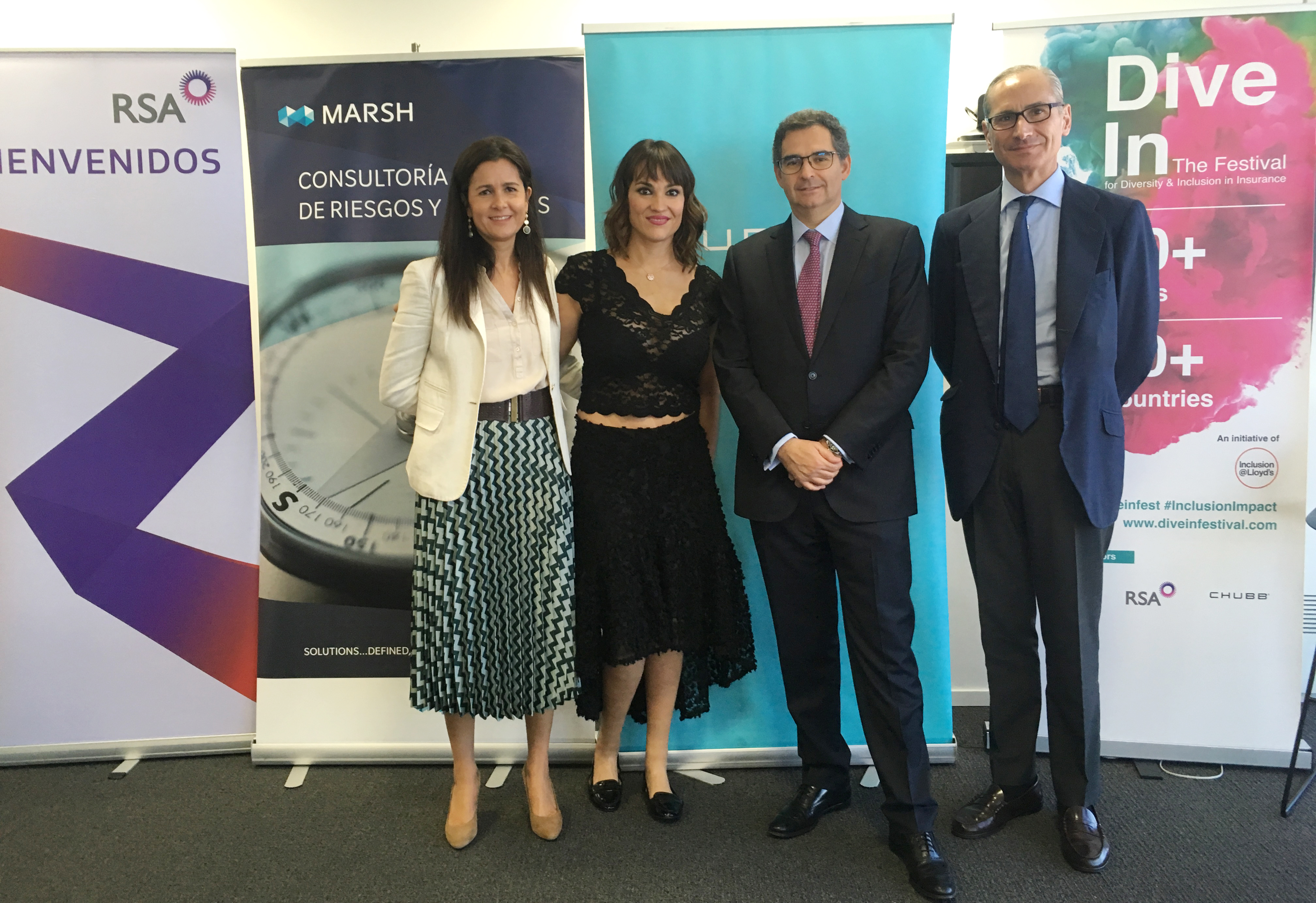 El encuentro contó con Gonzalo Fernández de Mesa, director de Comunicación de Marsh España, Ignacio Borja, Country President de Chubb, y Loreto Ruibérriz de Torres, directora de Recursos Humanos de RSA. "Marsh apoya y promueve la iniciativa del Festival Dive In desde hace años ya que creemos firmemente en la inclusión y en la diversidad en los entornos empresariales. En España cumplimos la Ley de Integración Social del Minusválido (LISMI), firmamos acuerdos con Centros Especiales de Empleo y promovemos internamente la responsabilidad social corporativa a través de diferentes acciones e iniciativas organizadas en diferentes ciudades" ha declarado Gonzalo Fernández de Mesa.