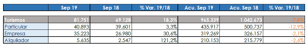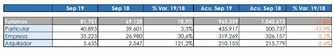 Las matriculaciones de turismos y todoterrenos han crecido un 18,3% en septiembre, ascendiendo a 81.751 unidades, según datos publicados por Anfac, Faconauto y Ganvam. Esta subida compensa, en cierto modo, la disminución de las ventas que empezó a apreciarse justo hace un año, cuando las entregas cayeron un 17% tras la entrada en vigor del WLTP, el nuevo ciclo de homologación. Por canales, en particulares se ha registrado un incremento del 3,3%, hasta las 40.893 unidades; y en alquiladores ha aumentado nada menos que un 121%, elevándose a 5.635 vehículos.