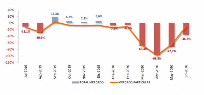 Coincide con ella Raúl Morales, director de comunicación de Faconauto: "El resultado de junio ha vuelto a ser catastrófico, por lo fuerte de la caída. El mal comportamiento del canal de empresas alquiladoras, con un turismo todavía inexistente, ha castigado especialmente la cifra final de junio. Como nota positiva, nos quedamos con que el canal de particulares, al que atienden los concesionarios, es el que menos ha retrocedido, comportándose mejor de lo esperado".