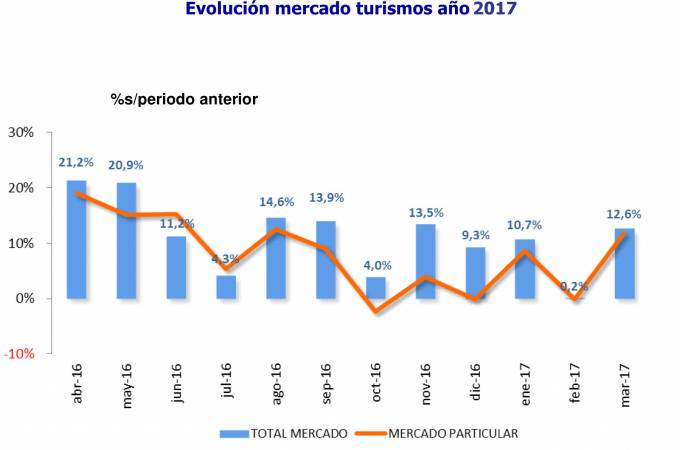 Las matriculaciones de turismos en el mes de marzo suben un 12,6%