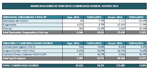 Las matriculaciones de vehículos comerciales ligeros crecen un 18,3% en agosto