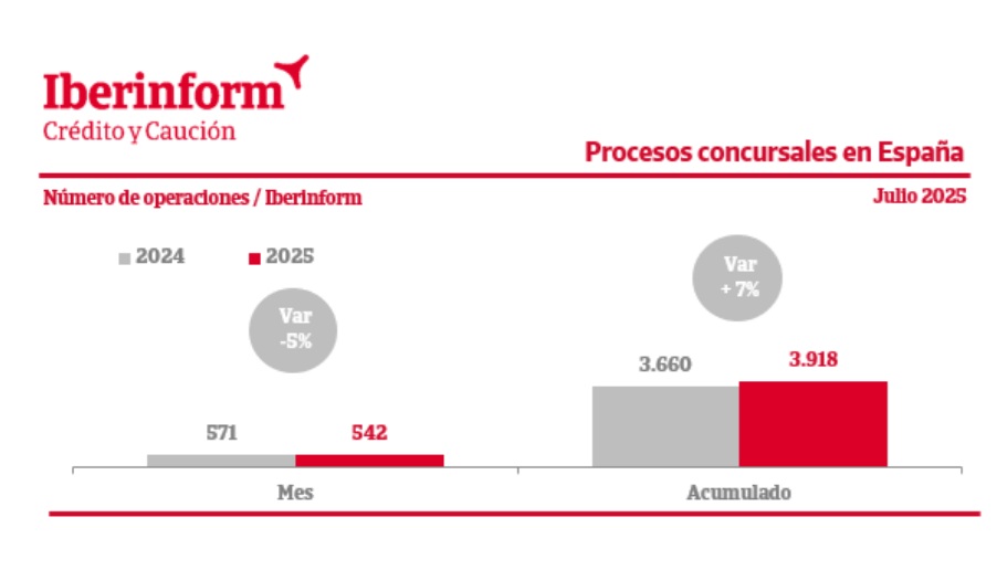Los concursos de acreedores han crecido un 7% hasta julio, con mayor impacto en medianas empresas y firmas jóvenes, según señala Iberinform. Aunque en julio se registró una caída interanual del 5%, el balance anual continúa al alza.