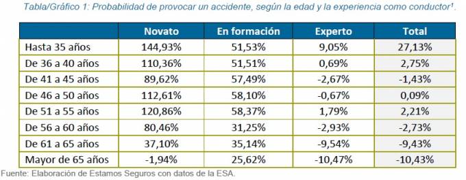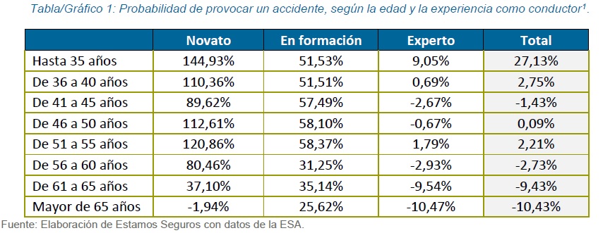 Los jóvenes son los más propensos a protagonizar accidentes de tráfico debido a su falta de experiencia. Esta es una de las conclusiones del IV Informe sobre la juventud al volante. Por qué es necesario ser prudente realizado por Estamos Seguros. El estudio muestra con claridad cómo la probabilidad de tener un percance va descendiendo conforme se acumulan años al volante. Los menores de 36 años tienen dos veces y media (145%) más probabilidades de tener un accidente de tráfico que un conductor ordinario cuando tienen menos de tres años de carnet. Pero cuando llevan más de una década conduciendo, esta probabilidad disminuye muy significativamente y pasa a ser de apenas un 9% más.