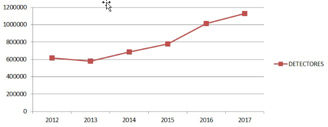 Según el último estudio de mercado de detección de incendios del ejercicio 2017, realizado por Tecnifuego, en el ejercicio anterior las ventas crecieron entorno al 10%: "Parece claro que hemos dejado atrás el fondo que se tocó en los años más duros de la última crisis, y que seguimos una tendencia de crecimiento en unidades (detectores como el elemento principal de referencia), en el último periodo de 5 años", según comenta el coordinador del Comité de Detección, Juan de Dios Fuentes. 2018 se percibe como un año en el que la entrada en vigor del Reglamento de instalaciones de protección contra incendios, RIPCI, debería continuar impulsando la tendencia positiva de los últimos años.