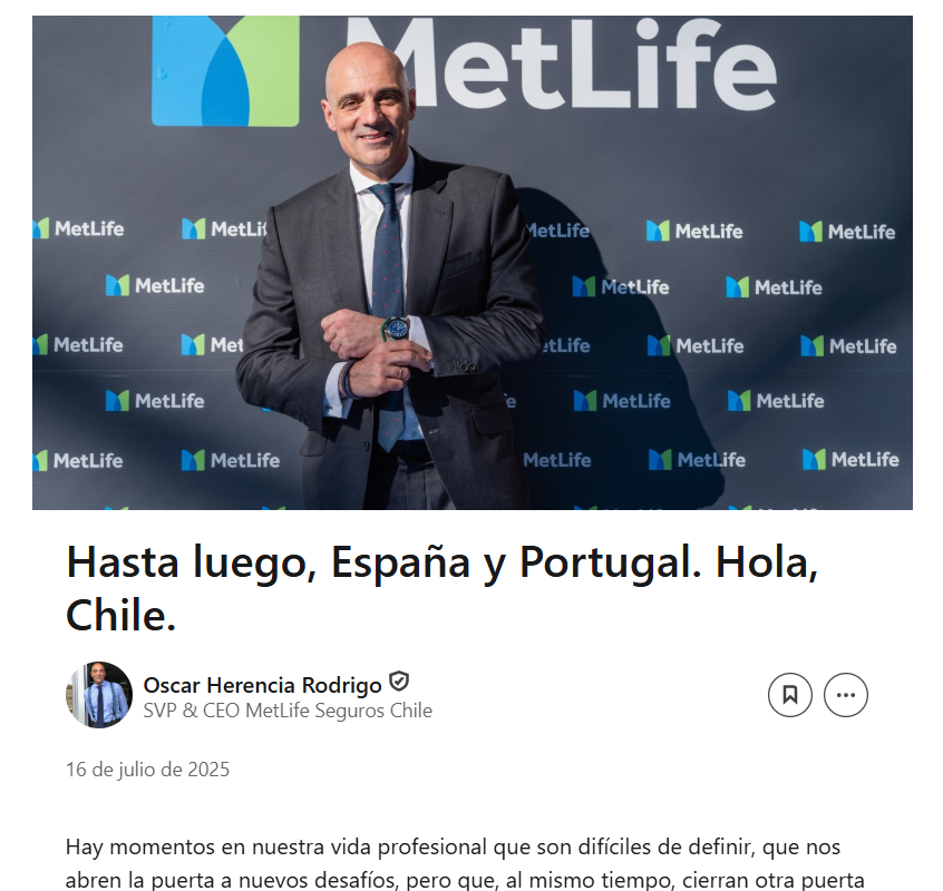 Herencia ha publicado en su cuenta de LinkedIN un post bajo el título 'Hasta luego, España y Portugal. Hola, Chile' donde indica que "hay momentos en nuestra vida profesional que son difíciles de definir, que nos abren la puerta a nuevos desafíos, pero que, al mismo tiempo, cierran otra puerta y nos hacen mirar atrás con nostalgia y, sobre todo, con agradecimiento".