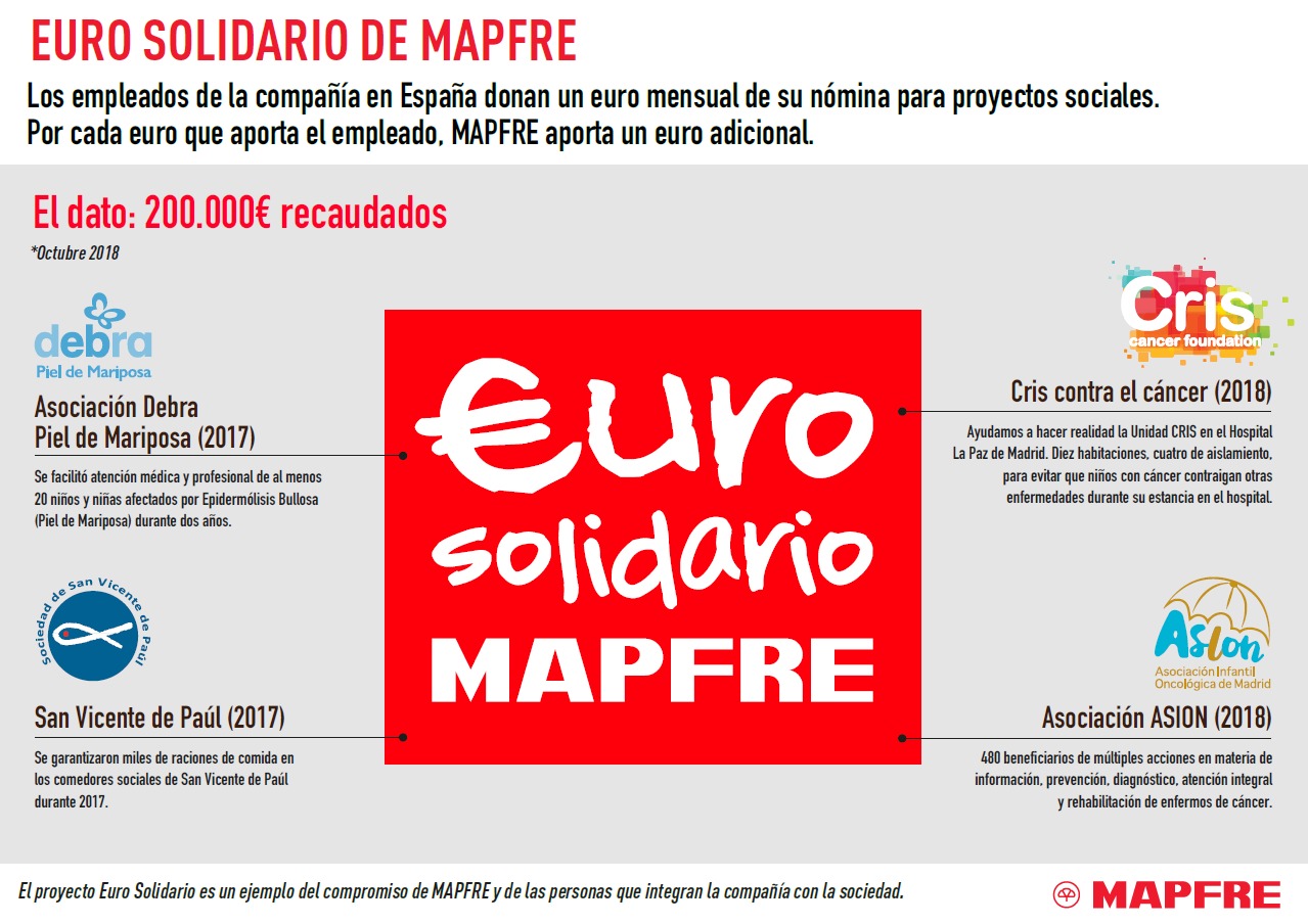 El 50% de los empleados de Mapfre han entregado a causas sociales durante el mes de octubre algo más de 200.000 euros. Esta iniciativa forma parte del Área Corporativa de Recursos Humanos en coordinación con la Fundación Mapfre denominada Euro Solidario y se puso en marcha el año pasado.