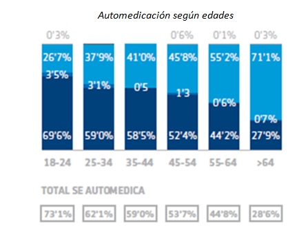 El I Estudio sobre Salud y Estilio de Vida de Aegon señala entre sus conclusiones que más de la mitad de los españoles se medica por sí mismo. Concretamente el informe muestra que lo hace el 52% en casos de enfermedades o dolencias leves, mientras que el otro 48% asegura que nunca toma medicamentos a no ser que su médico se lo aconseje.