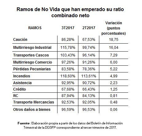 11 de los 22 ramos de No Vida han empeorado su ratio combinado entre julio y septiembre de 2017, según se extrae del último Boletín de Información Trimestral de Seguros publicado por la DGSFP.