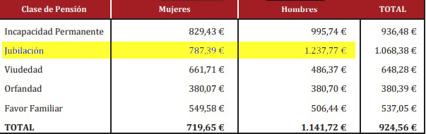 Las mujeres cobran de pensión de jubilación 450 euros menos que los hombres