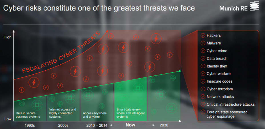 Según Torsten Jeworrek, la demanda de prevención y seguros crece al tiempo que las compañías reconocen su exposición y buscan protección contra las consecuencias financieras de los ciberriesgos. "Mientras que en 2017 el tamaño del mercado de ciberseguros se situó entre 3.500 y 4.000 millones de dólares, se espera que crezca hasta los 8.000-9.000 millones de dólares para 2020. El seguro es solo un aspecto, por supuesto. Igual de importante es la prevención mediante la toma de medidas técnicas, así como una rápida respuesta y limitación de los daños en el caso de pérdida".