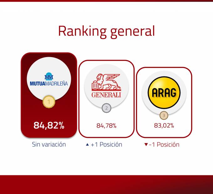 Mutua Madrileña se mantiene en la primera posición en el ranking general de entidades aseguradoras mejor posicionadas en Internet que elabora Innovación Aseguradora. Le siguen muy de cerca, a tan solo cuatro centésimas, Generali que gana una posición y releva a ARAG que pasa a la tercera posición.