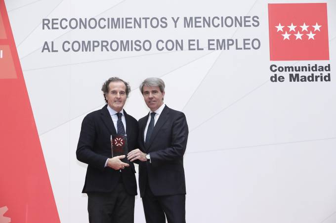 La Comunidad de Madrid ha reconocido la iniciativa 'Escuela Mutua' de Mutua Madrileña y su fundación para formar y emplear a víctimas de violencia de género. El presidente de la Comunidad, Ángel Garrido, entregó el galardón a Rafael González-Palenzuela, director de Recursos Humanos de la aseguradora.
