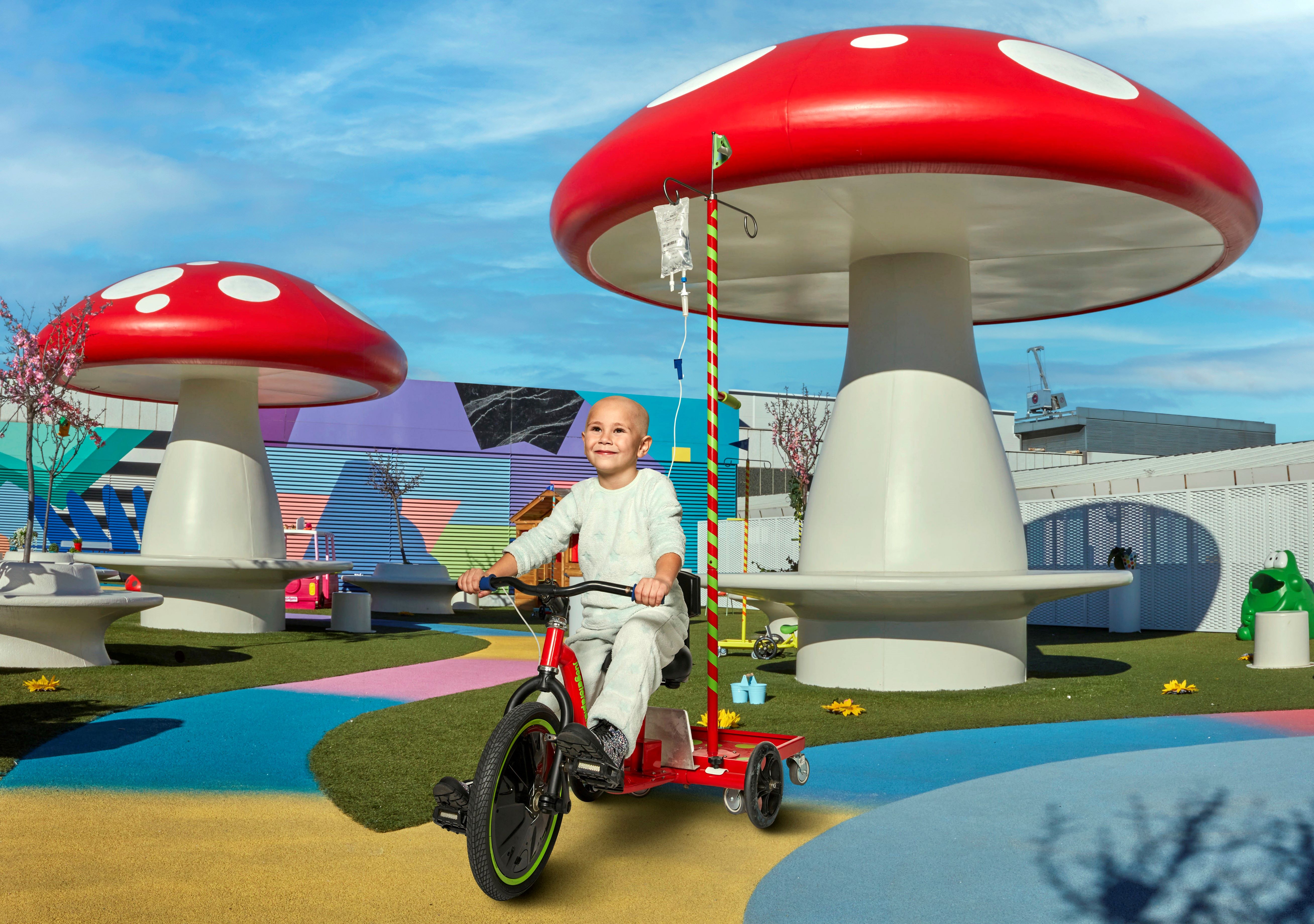 Valle Sallés, vicepresidenta de la fundación, cuenta que a la vez que se divierten con los 'kiciclos, los pequeños hacen ejercicio, lo que ayuda a la recuperación del sistema locomotor que en ocasiones se ve afectado por el desarrollo de ciertos tumores o por el tratamiento. Este 'vehículo' lleva adosado un remolque portasueros que permiten recibir el tratamiento.