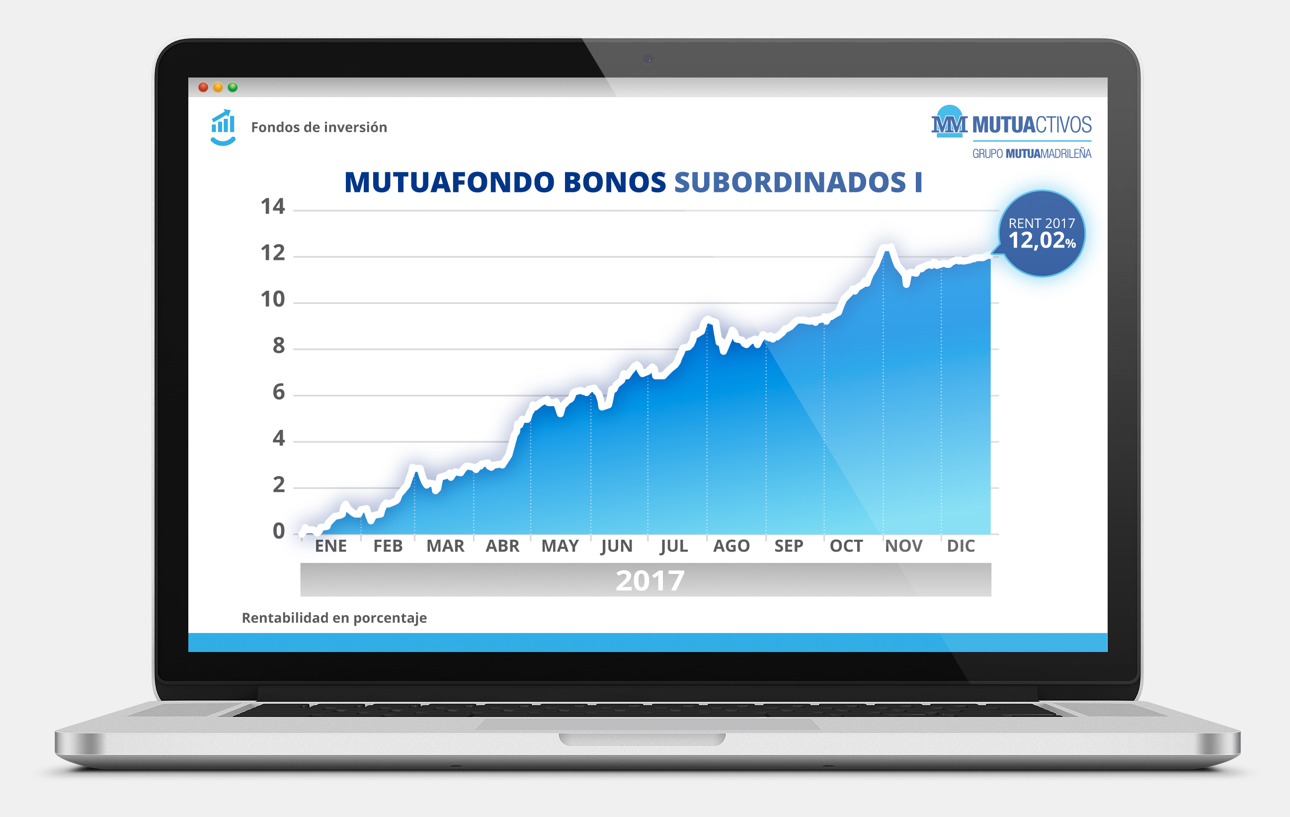 Mutuafondo Bonos Financieros arrojó unas ganancias del 5,08% en 2017. Este instrumento invierte principalmente en renta fija privada del sector financiero. Desde su lanzamiento, en 2009, el fondo acumula una rentabilidad media anual del 4,02%.