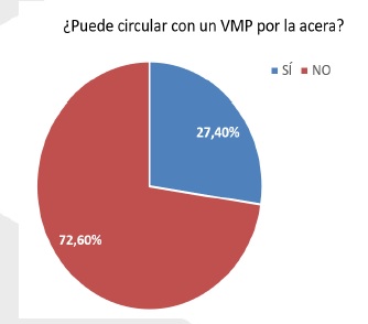 También es muy significativo el gran desconocimiento que existe sobre la velocidad de los VMP. Sólo el 42% sitúa correctamente la velocidad máxima de estos vehículos en los 25 km/h. Por otro lado, solo el 30% sabe que la velocidad mínima para que un vehículo tenga consideración de VMP es de 6 km/h y por debajo de esa velocidad se considera un juguete.