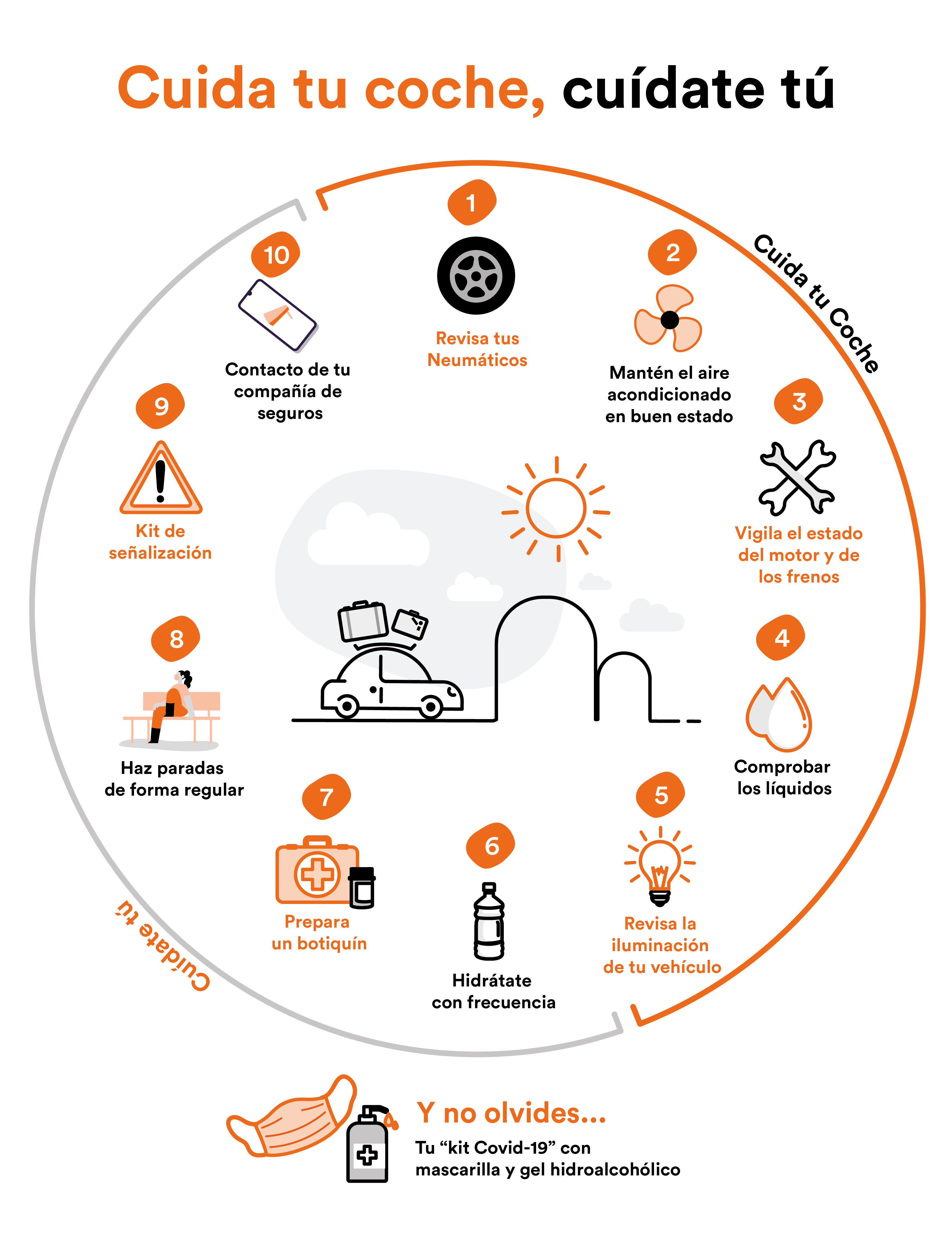 - Hidratarse con frecuencia, tanto los conductores como los ocupantes.