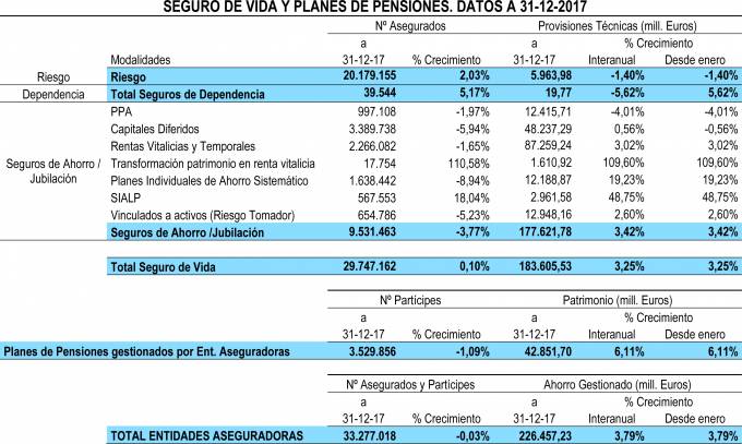 Por su parte, los PIAS alcanzaron a cierre de diciembre los 12.189 millones y registraron un crecimiento del 19,23% en 2017. Mientras, los capitales diferidos se mantienen planos y acumulan 48.237 millones de euros.