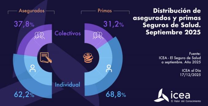Los seguros colectivos de Salud crecieron a septiembre de 2025 un 11,3% en primas y un 6,6% en asegurados. Así, según datos de ICEA, los colectivos agrupan ya el 37,8% de los asegurados y el 31,2% de las primas.