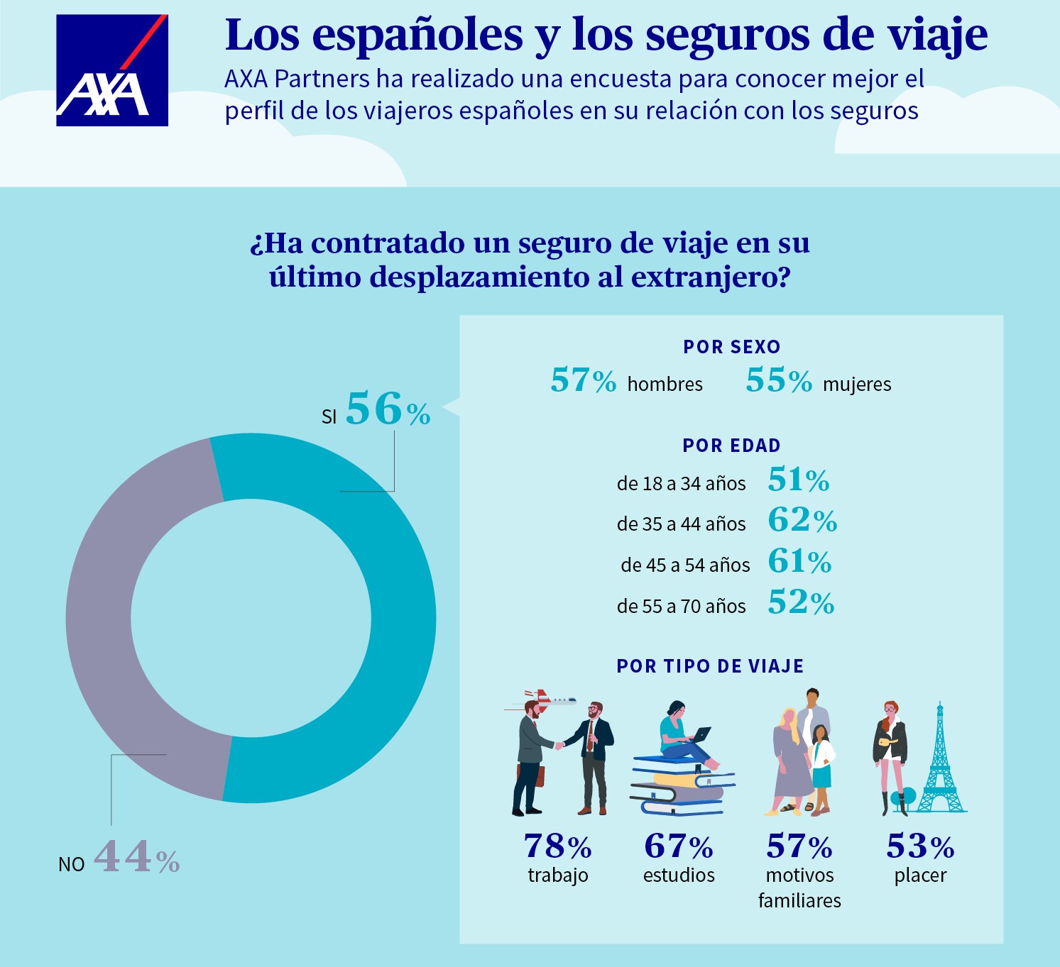 También se extrae de este informe que el porcentaje de contratación es significativamente más elevado en los viajes por motivos de trabajo (78%) o estudios (67%), frente a los viajes por motivos familiares (57%) o por placer (53%). El 75% de los encuestados que viajaron con un seguro aseguran que lo volverán a contratar.