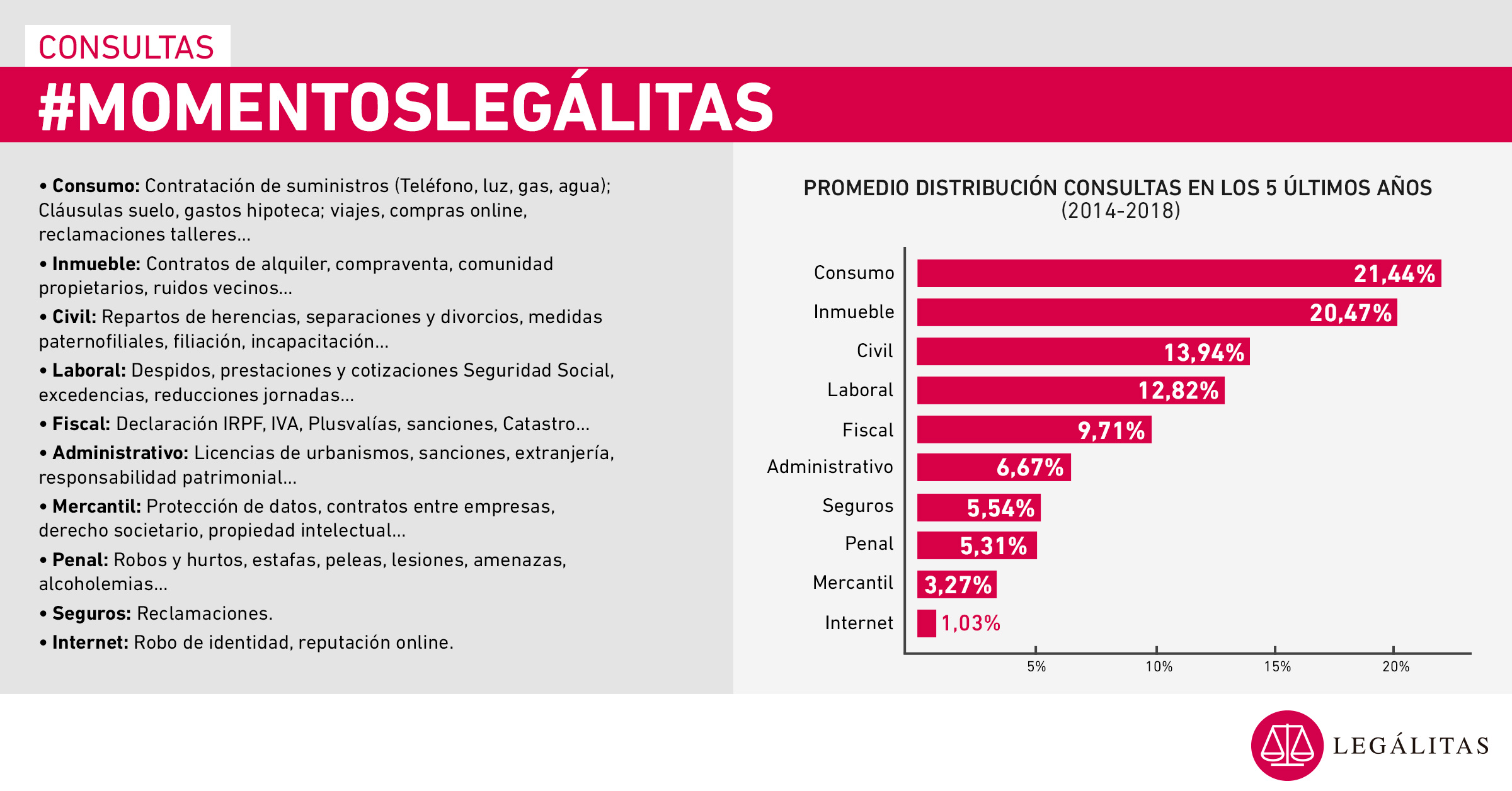 Legálitas ha detectado a través de un estudio realizado en base a dos millones de consultas analizadas y una encuesta de campo entre más de ciento cincuenta abogados de su red de despachos en España los momentos en que una persona necesita un abogado y sobre estos datos ha comenzado una campaña de sensibilización que podrá ser vista en televisión, radio, internet y RRSS.