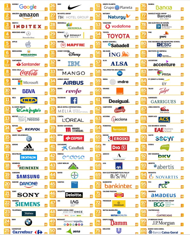 Google, Inditex y Amazon continúan encabezando el ranking de las empresas preferidas por los universitarios aunque en esta edición Inditex y Amazon se intercambian los puestos 2º y 3.