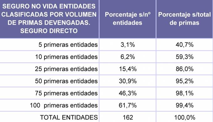5 entidades acaparan el 40,7% de todo el negocio No Vida