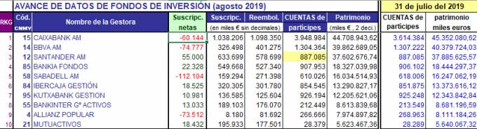 A pesar de esta reducción del último mes, los fondos de inversión arrojan un crecimiento en lo que llevamos de año del 3,7%, o lo que es lo mismo, un crecimiento de 9.525 millones más que en diciembre de 2018. La incertidumbre no se tradujo en el sentimiento inversor del partícipe puesto que estos fondos no experimentaron apenas reembolsos durante el mes de agosto y la totalidad del ajuste tuvo su origen en valoración por mercado, apunta Inverco.
