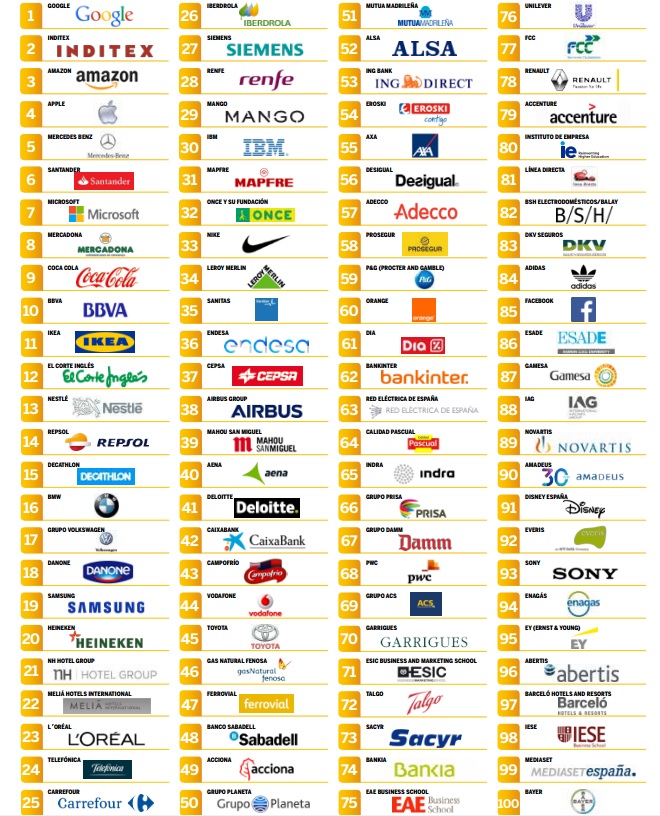 La primera de las compañías que aparece en el ránking es Mapfre en el puesto 31; Sanitas le sigue de cerca en el 35. Mediada la tabla encontramos a Mutua Madrileña en el puesto 51 y AXA en el 55. Ya en los puestos 81 y 83 se sitúan Línea Directa y DKV.